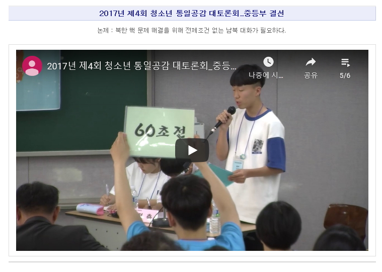 | 2018년 제5회 청소년통일공감대토론회 (0) | 2020.03.20 |